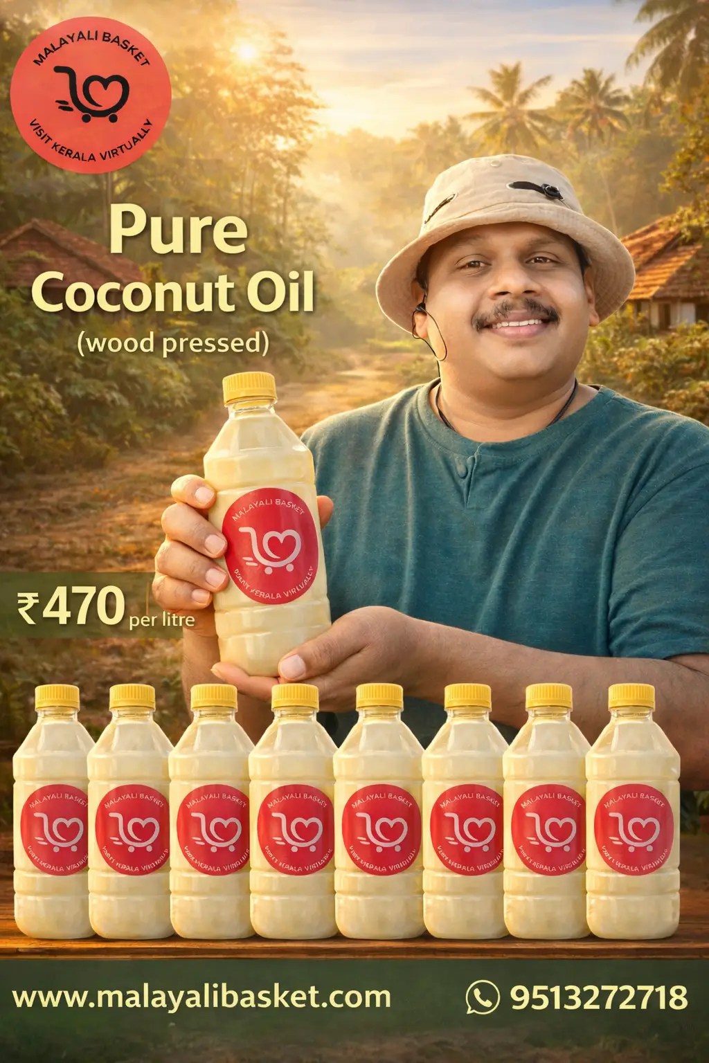 ചക്കിൽ ആട്ടിയ ശുദ്ധമായ നാടൻ വെളിച്ചെണ്ണ ആണ്.